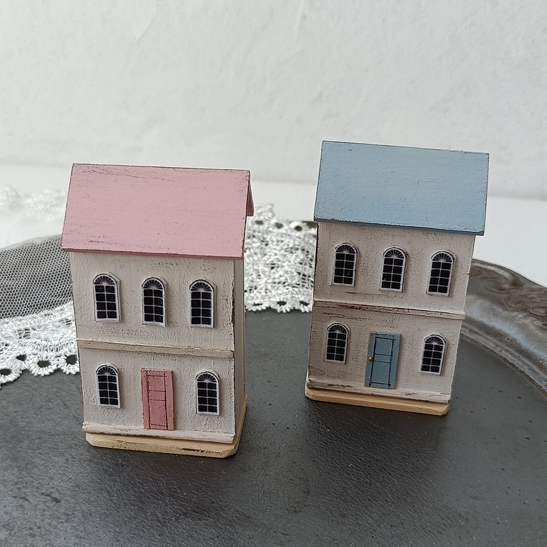 ドールのドールのためのハウス くすんだピンクの屋根が可愛い1軒家 オブジェとして置いても良し、外壁を外せば小さなドールが入れます 主にヒノキ・紙 製です 内装に布を使用しています 全体的に 汚してます サイズは画像5・6枚目を参照ください