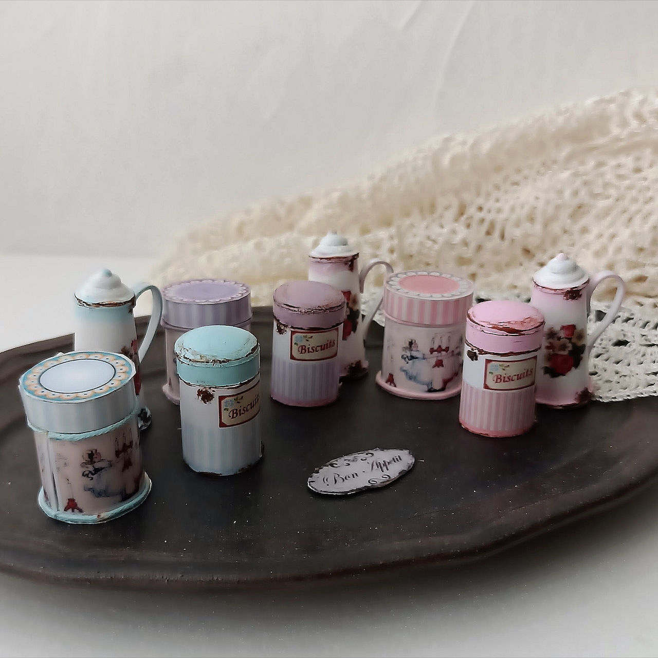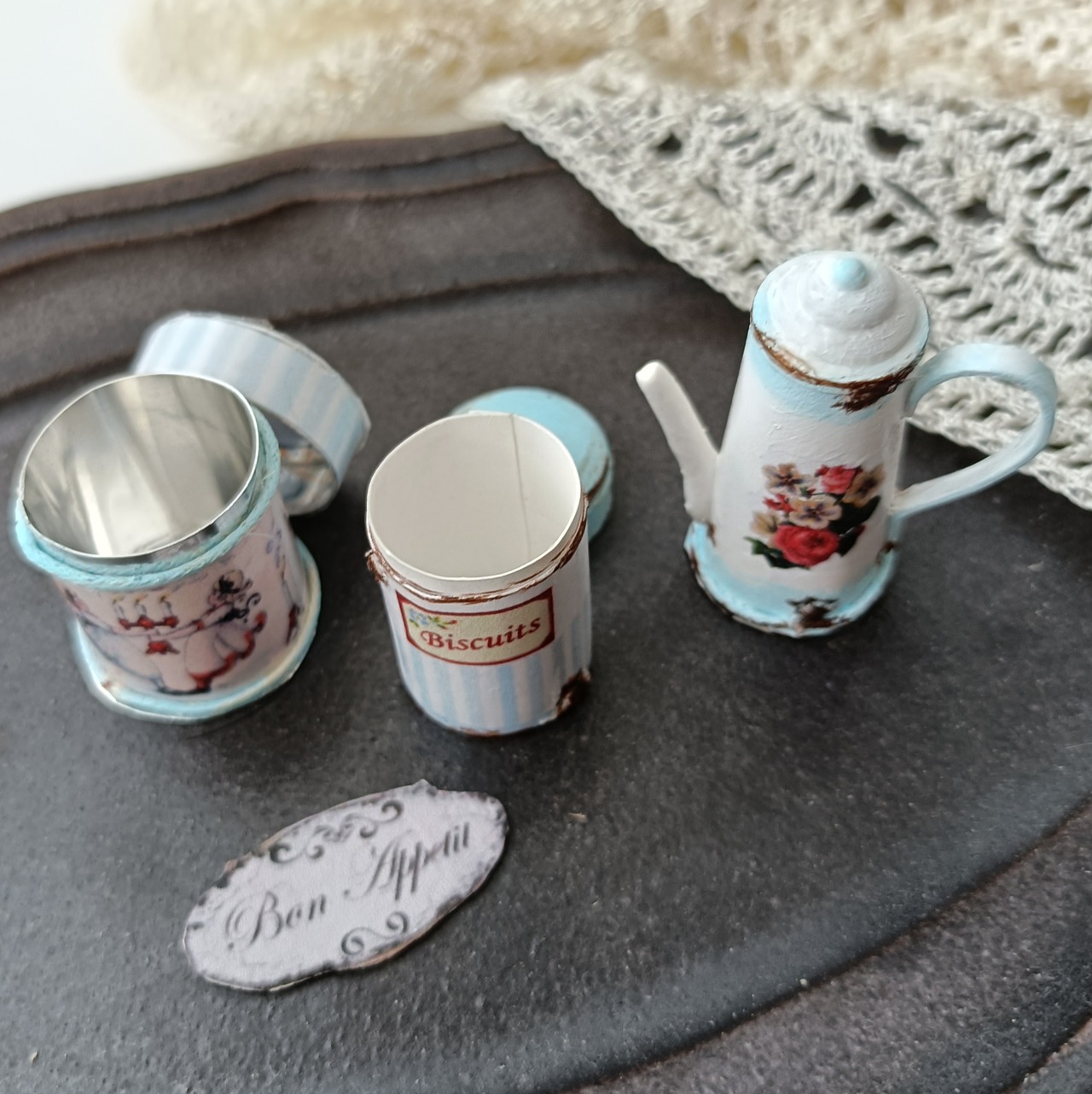 アンティーク風のお花柄ポットとキャニスターとかわいい柄の缶。。