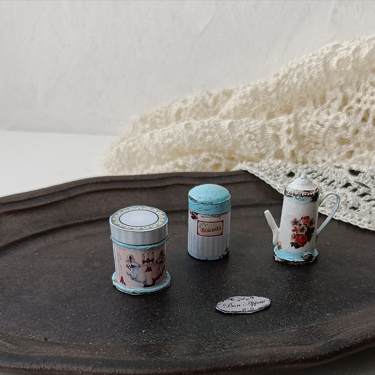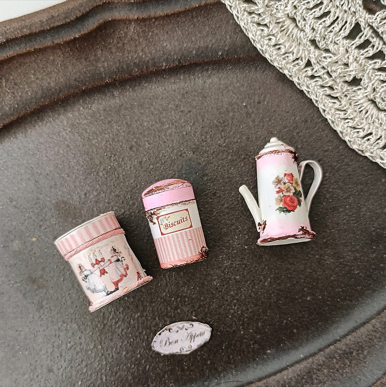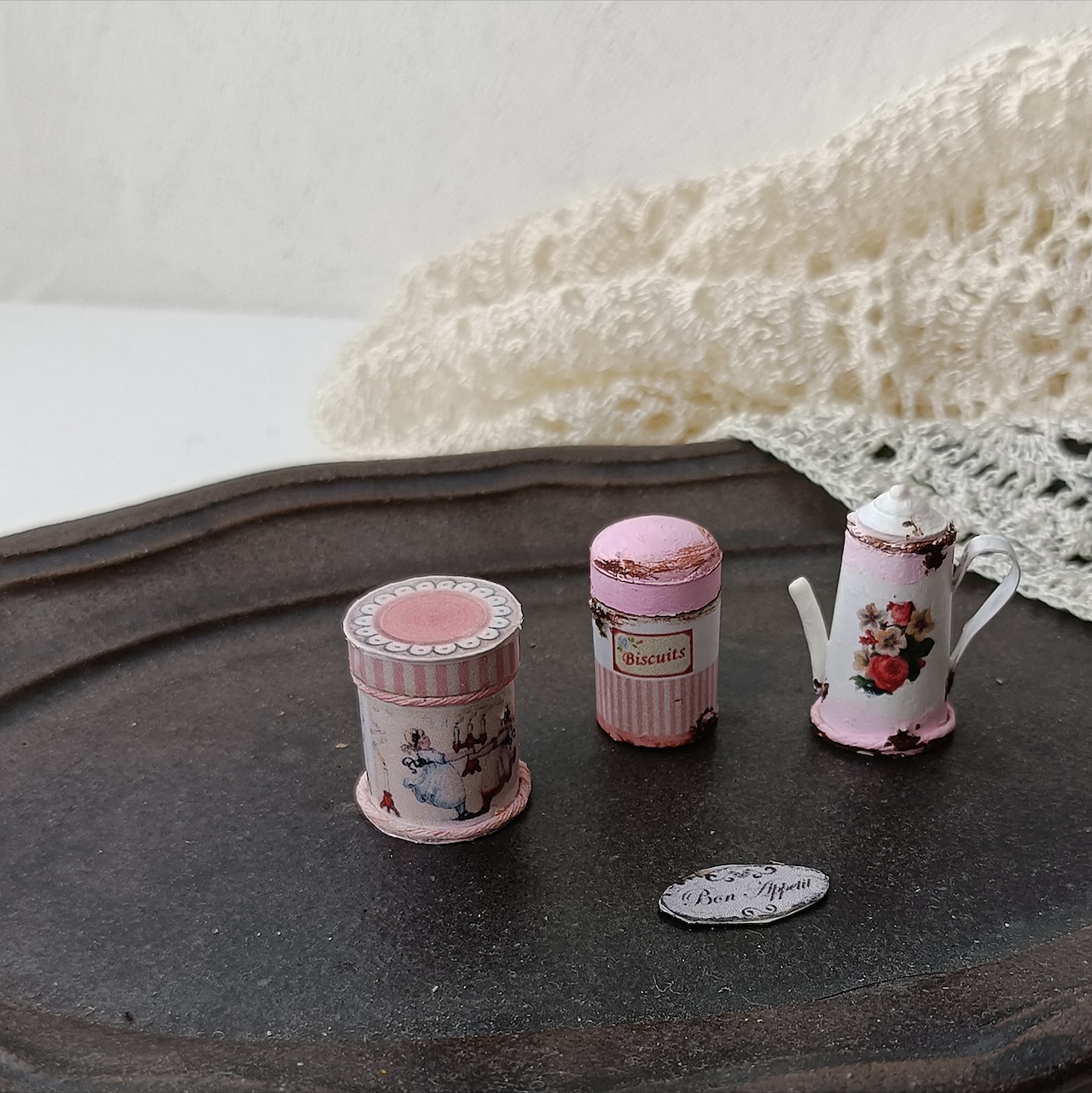 アンティーク風のお花柄ポットとキャニスターとかわいい柄の缶。。