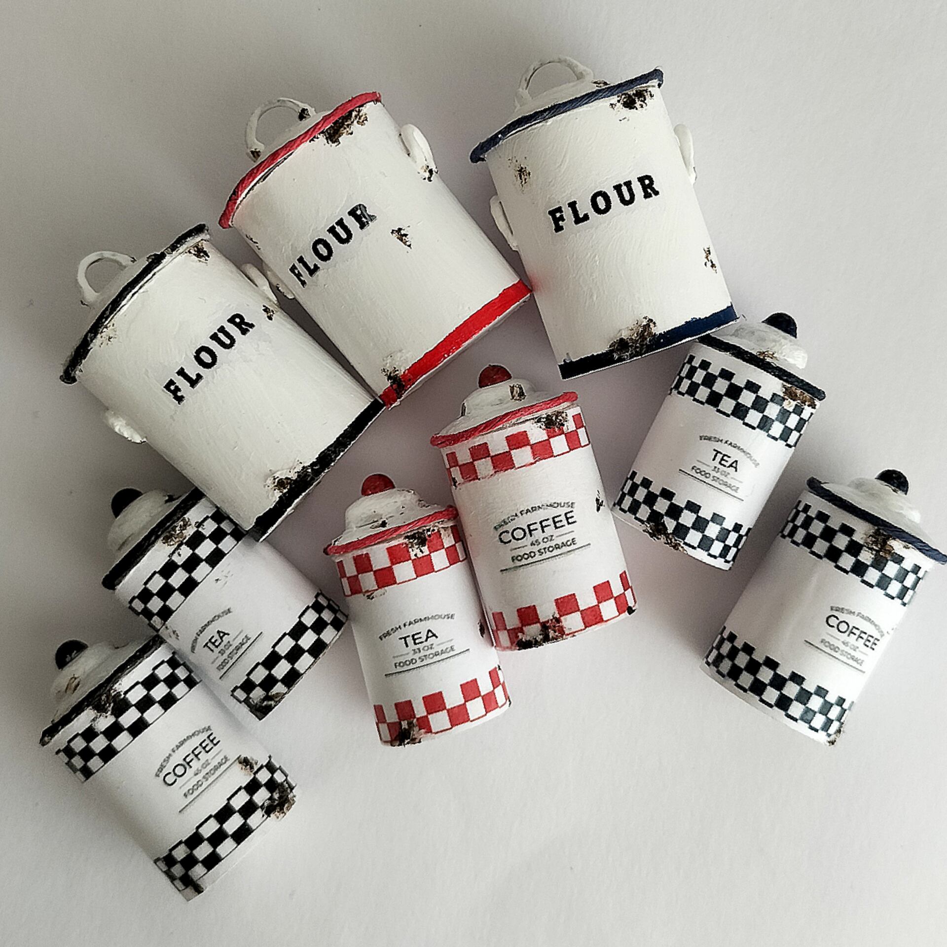 どこか懐かしいキャニスターとフラワー缶。。 サイズ違いのキャニスター2個とフラワー缶1個のセットです。 キャニスターとフラワー缶は紙製です。 サイズは画像3枚目を参照ください。