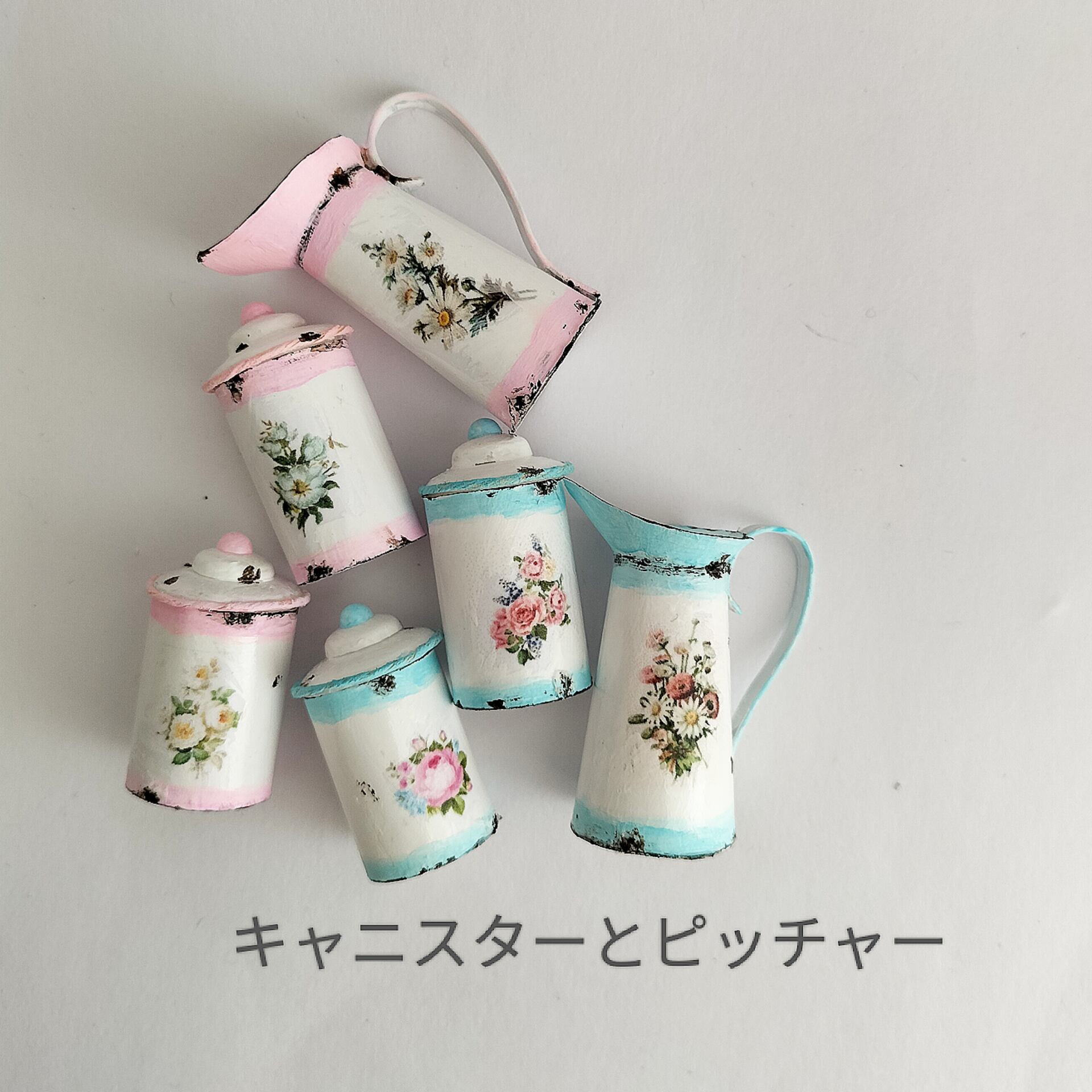 どこか懐かしいお花柄のキャニスターとピッチャー。。