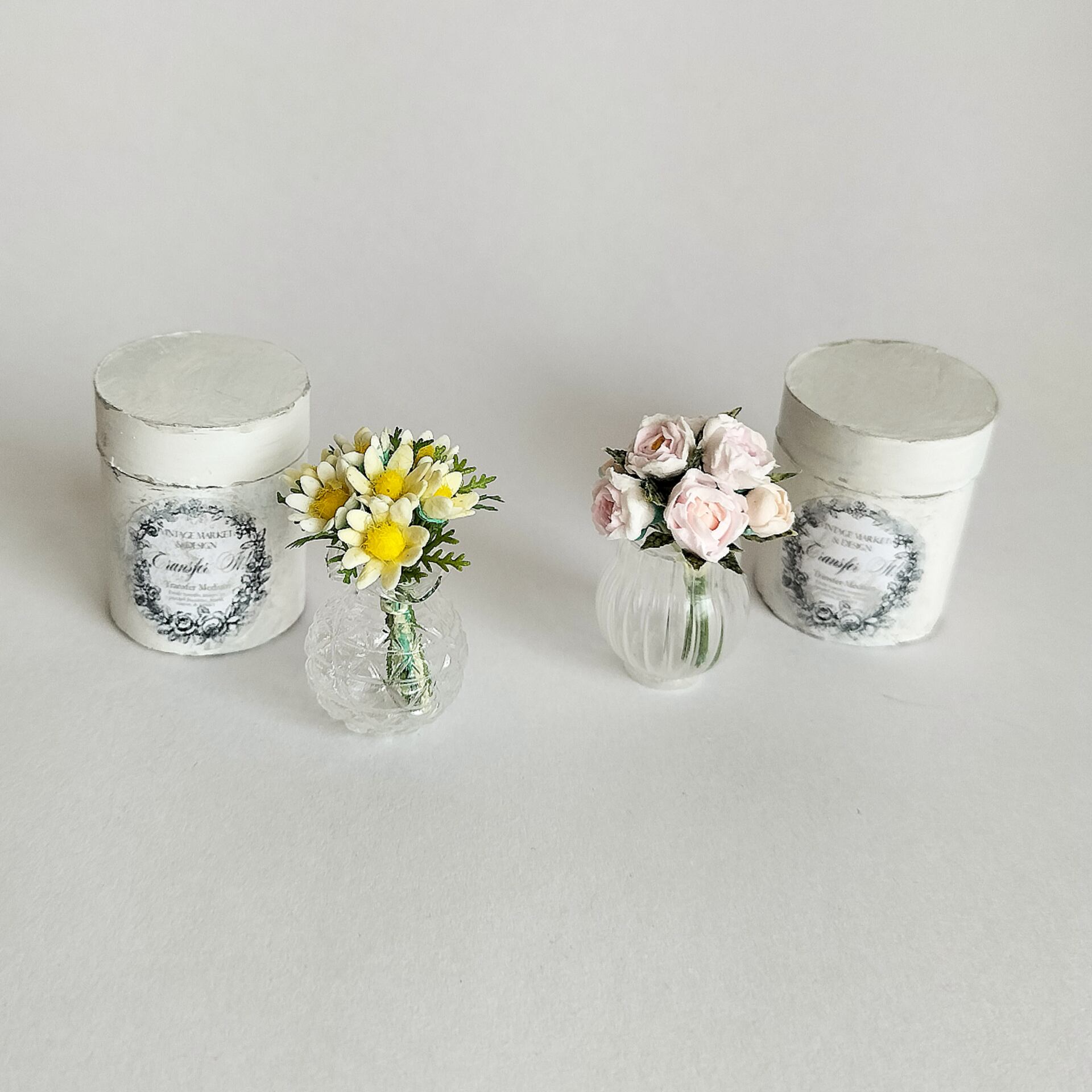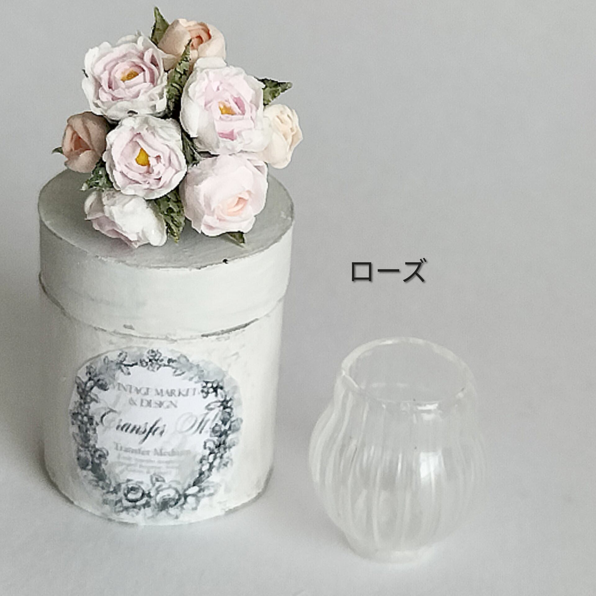 アンティークな紙製BOXは涼し気な花瓶が収納出来ます。