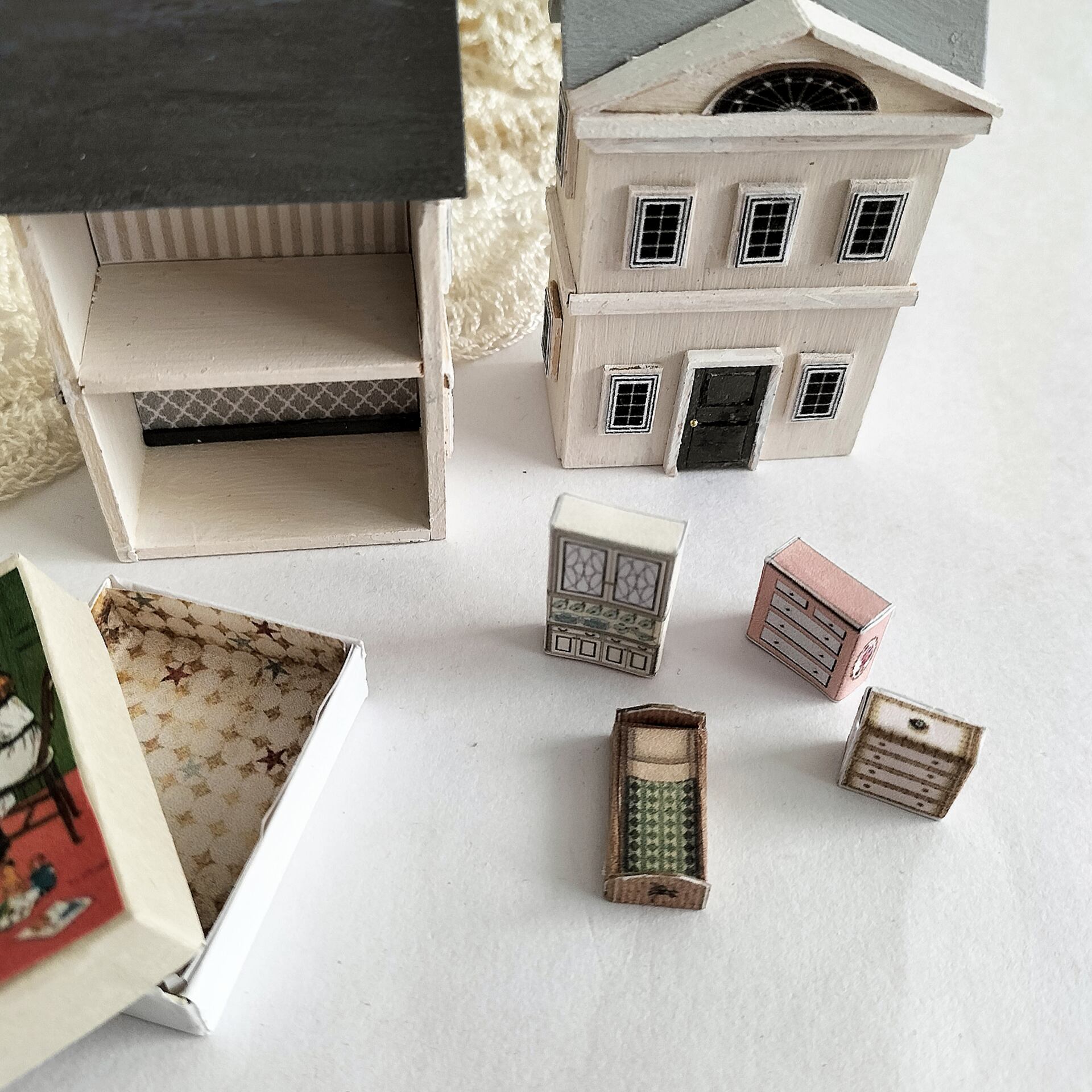 紙で出来たドールハウス用の家具は別売りオプション。